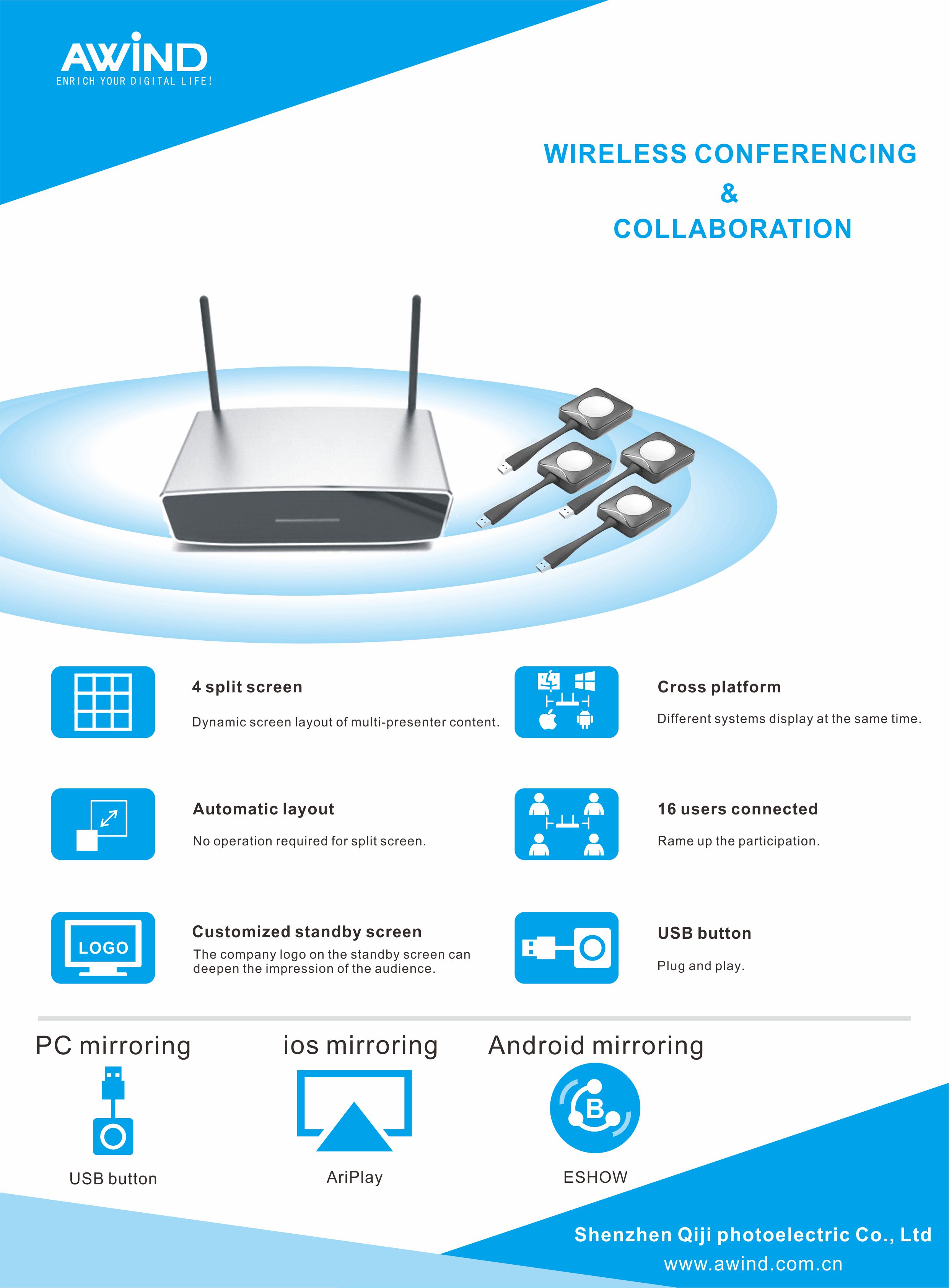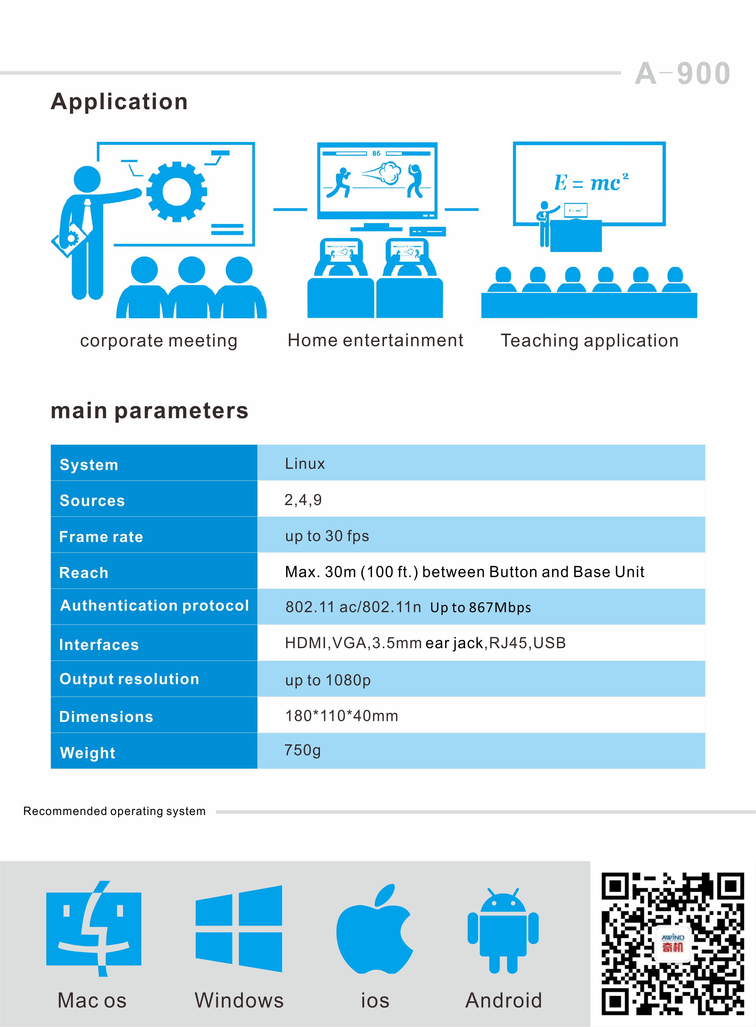 Awind wireless conference collaboration a-900 USB one button projection wireless 4K ultra clear transmission multi screen interactive airplay screen image mobile computer projector