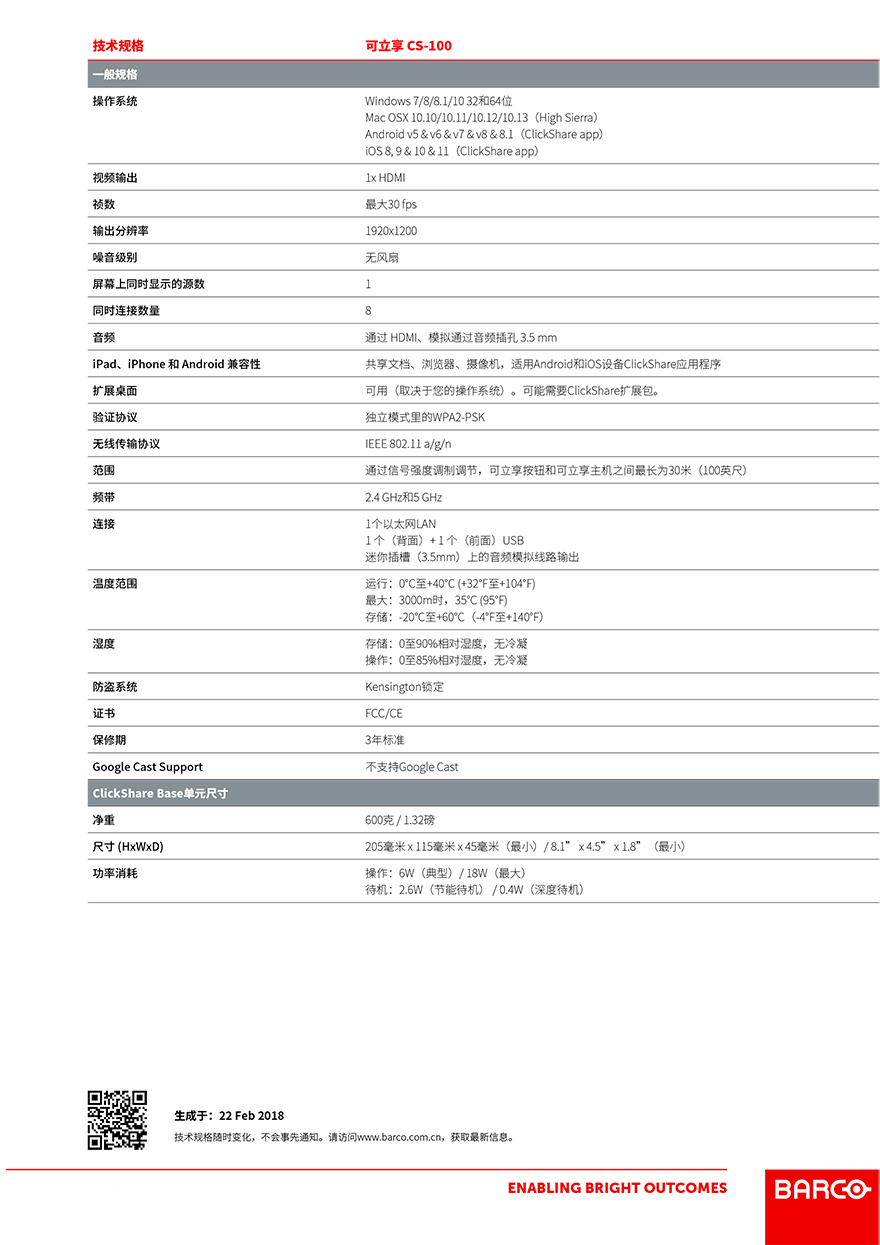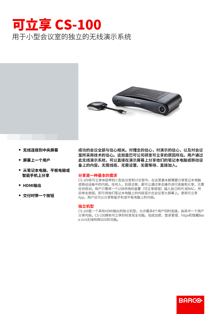 巴可BARCO Clickshare可立享CS-100無線演示協(xié)作系統(tǒng)